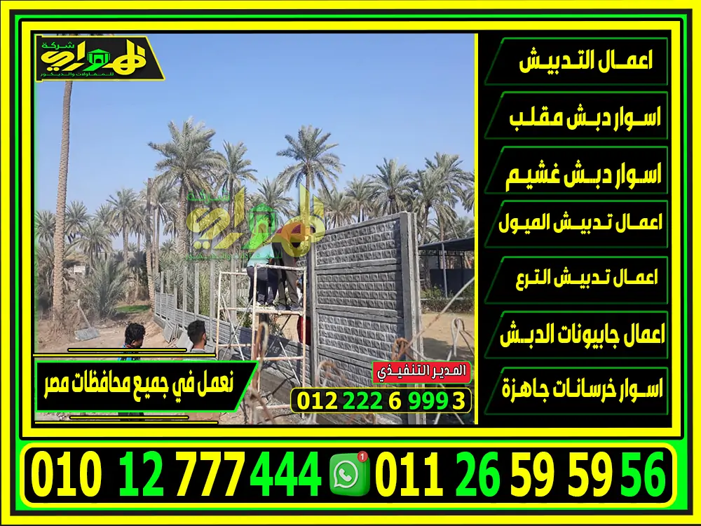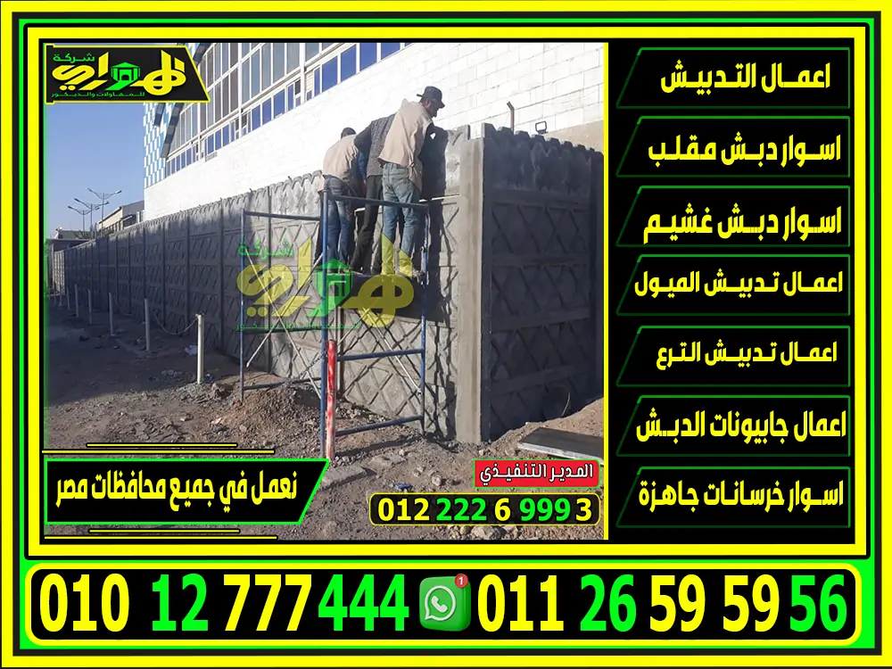 نوفر لكم من خلال شركة الهواري للمقاولات والتوريدات أفضل اسعار اسوار خرسانات جاهزة، وتستفاد بأكبر استفادة ممكنة من الأمان والحماية لمنزلك أو حديقتك أو شركتك الخاصة، لذلك نوفر لك الارقام المخصصة للتواصل الشركة عبر 01012777444 01126595956، حيث أنه متاح التواصل معهم 24 ساعة على مدار الأسبوع، سوف يتم الرد عليك على الفور من خلال خدمة الرد على العملاء وتوفير كافة المعلومات والاستفسارات التي تريدها بكل سهولة، علمًا بأن شركتنا تنافس الشركات الأخرى تمامًا في توفير تلك المزايا لك: